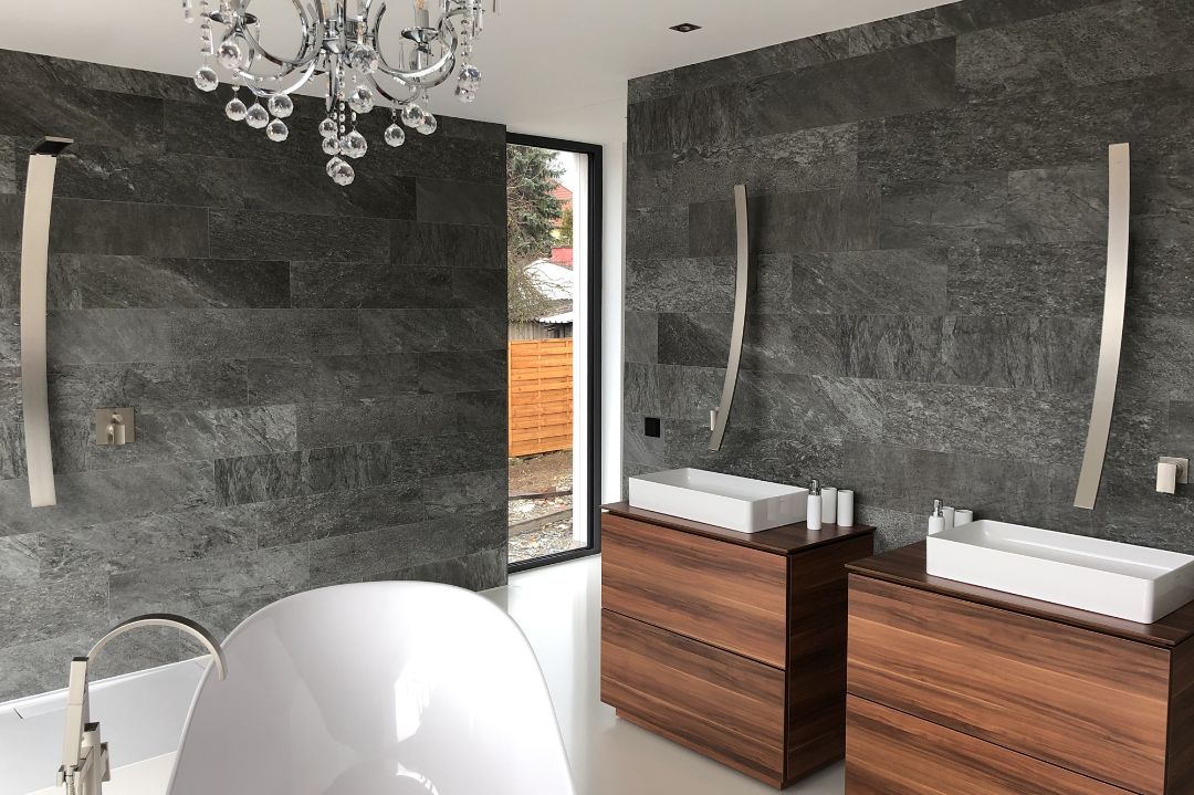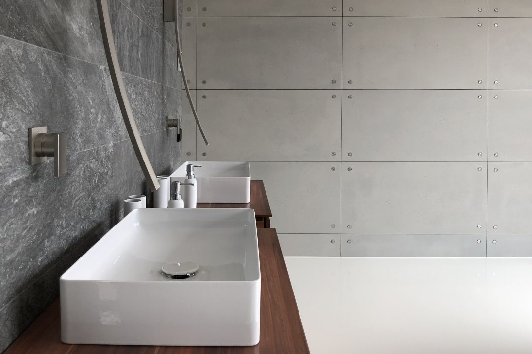 Die Bauherren wünschten ein Einfamilienhaus, das alle Funktionen auf einer Ebene bietet. Die Ausblicke sollten dabei konsequent auf den umgebenen Naturraum ausgerichtet sein, wobei zur Straße im Süden gelegene Flächen als „Puffer“ für die dahinter liegenden Wohnräume dienen.