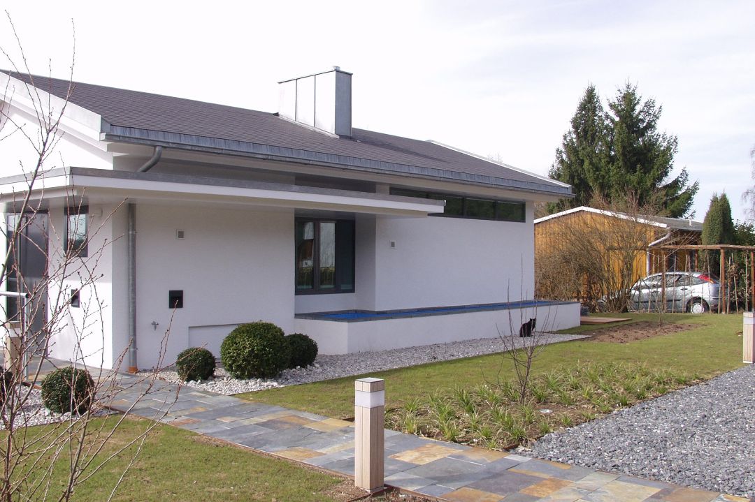 Aufgrund der Lage des Objektes im Außenbereich und Naturschutzgebiet waren vielfältige Verhandlungen mit (Bau-)Behörden zu führen. Nach der Bestandsaufnahme wurde gemeinsam mit dem Bauherrn eine Grundrisslösung entwickelt, die eine zeitweise, aber ganzjährige Nutzung der Immobilie ermöglicht. Dabei stand die Öffnung des Baukörpers nach Süden und das gleichzeitige Abschließen zur Straße im Norden im Zentrum der Entwurfsidee. Öffentliche Räume sind dabei im Obergeschoss – die privaten Zimmer im Gartengeschoss des Baus angeordnet. Innerhalb weniger Monate konnte die Bauaufgabe termingerecht umgesetzt werden.
