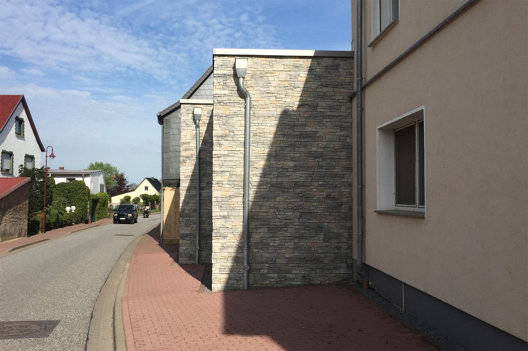 Gebäude aus unterschiedlichen Epochen im Ortszentrum von Tilleda sind über einen gedeckten Innenhof verbunden. Sie bilden auf ca. 680 m2 einen verarbeitenden Betrieb des Fleischerhandwerks. Um die Arbeitsbedingungen weiter zu verbessern und den gewachsenen Bedarf der umliegenden Filialen abdecken zu können, plant der Inhaber eine Erweiterung der Anlagen.