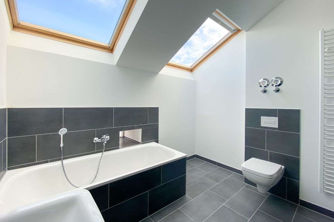 Eine besondere Herausforderung war die Bauphysik: Innendämmungen vor Bruchsteinwänden wurden als Lehmstein-Vorwände ausgeführt. Diese regulieren mit diffusionsoffenen Beschichtungen das Raumklima und schützen die historische Substanz vor Feuchteanfall. Schall schützende Bodenaufbauten und Unterhangdecken erhöhen den Komfort der Bewohner.